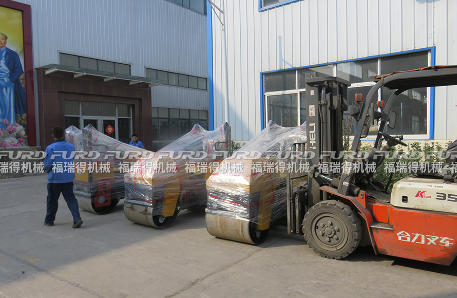 福瑞得機(jī)械3臺座駕雙鋼輪壓路機(jī)打包發(fā)往浙江