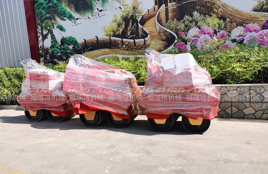6月18日,福瑞得機械將四川客戶2周前訂購的3臺手扶雙鋼輪壓路機和1臺7米移動燈塔打包發(fā)出。
