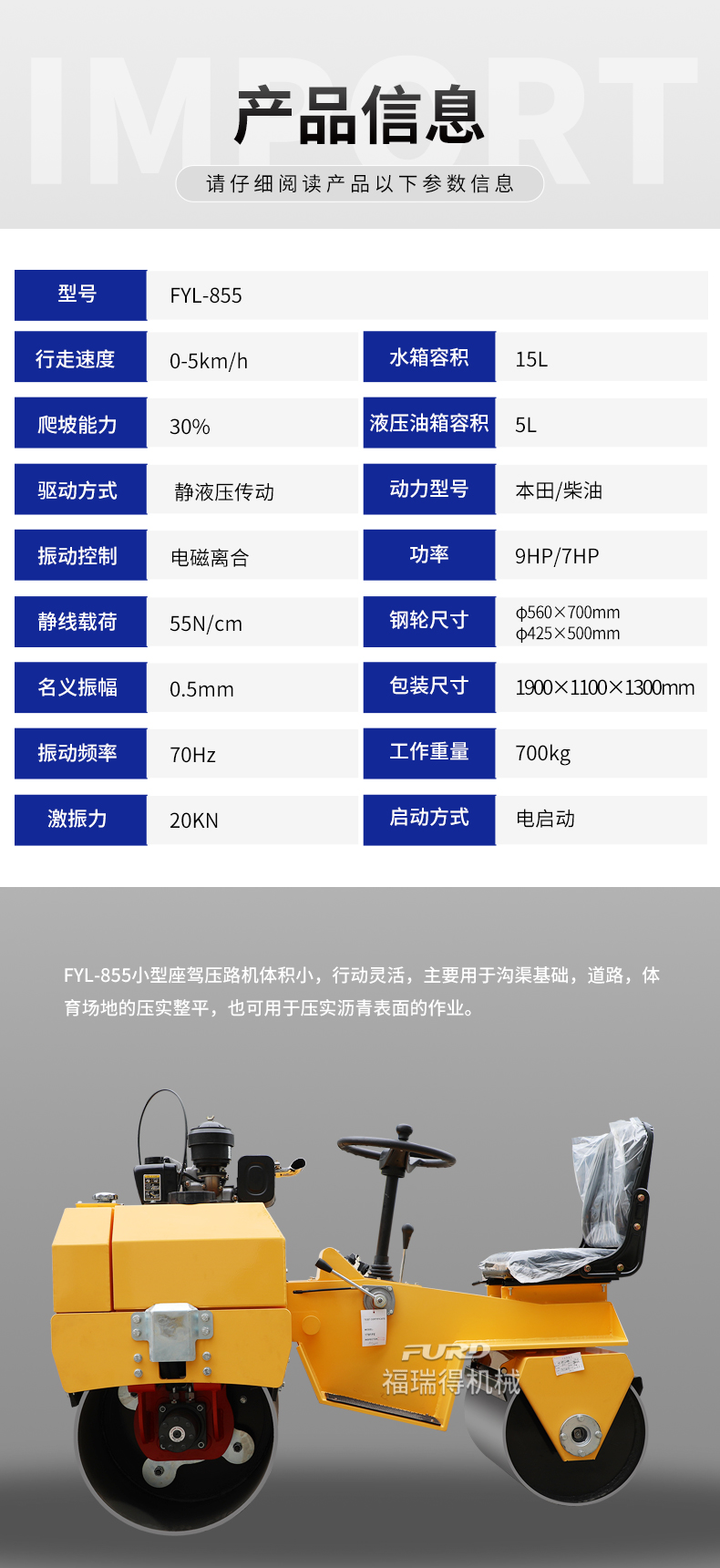 FYL-855 小型液壓振動壓路機(jī)